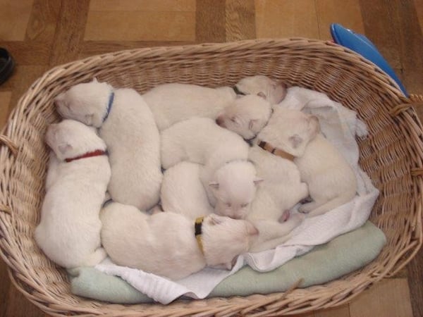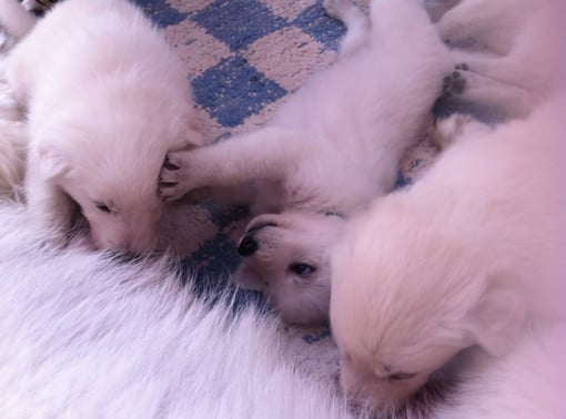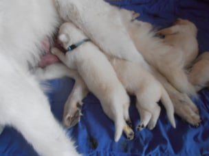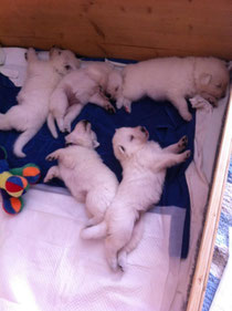 Heute 22.09.2014 alle Welpen sind gesund, munter und haben alle die Augen geöffnet.