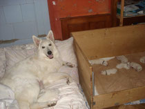Drei Tage nach der Geburt ihrer 8 Hündinnen, Estella schön wie vorher!