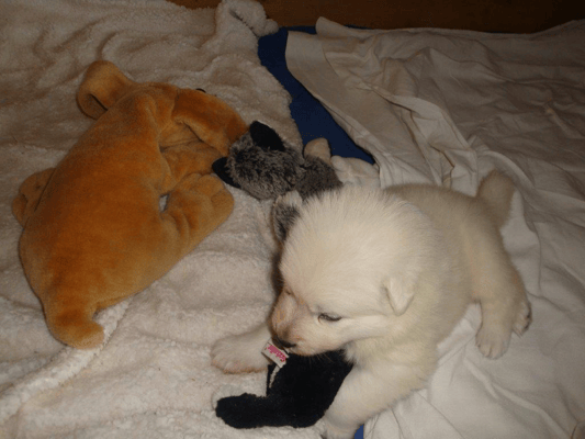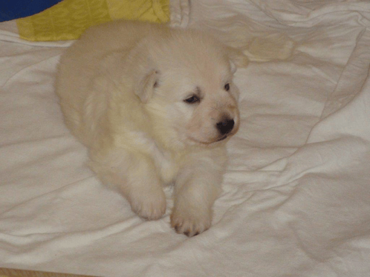 Finlandia ist bei mir geboren und ich dachte sie hätte einen guten Platz, leider erwies es sich nicht so und ich holte sie mit 4 Monaten zu mir zurück. Bald bemerkte ich das Finlandia schwierigkeiten hatte und ich musste intensiv lange mit ihr arbeiten, der erste Platz auch wenn es nur 2 Monate waren hat viel kaputt gemacht.